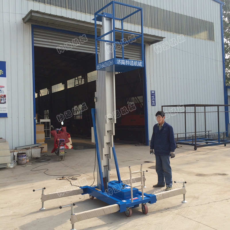 產品介紹:鋁(lǚ)合金式液壓升(shēng)降平台采用高強(qiáng)度優質(zhì)鋁(lǚ)合金(jīn)材料,具有造型美觀、體積小、重量輕、運轉靈活,推行方便。升(shēng)降平(píng)穩、安全可靠等優點。雙柱(zhù)鋁合金式升降機能穿越一般門廳,可隨意進出電(diàn)梯,能在極小的空間內發揮最高的舉升能力。使雙人高空作業變得輕而易舉。且耗電(diàn)少、無汙染、工作(zuò)時不傷地麵,可用於貼牆作業及探出(chū)作業。鋁合(hé)金升降平台分(fèn)為單柱、雙柱(zhù)、三柱和四柱(zhù)等。