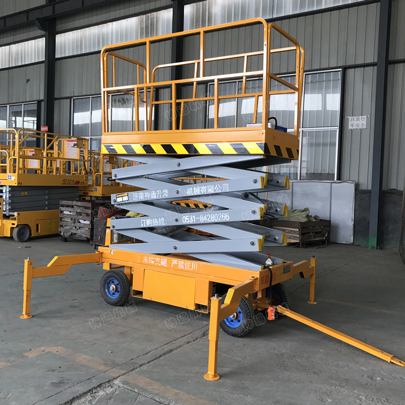 產品介紹:牽引式移動升降機(jī)為人工移動式,具有移動靈活、升降平穩、操(cāo)作方便等特點。移動式液壓(yā)升降平台其剪叉式結(jié)構,使平(píng)台具有較高的穩定性和較(jiào)高的承載能力,而寬大的作業台麵又可同時容納多人作業。